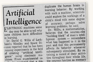 “Artificial Intelligence” from The Baltimore Sun on July 26, 1959, presents an early and unusual vision for AI — one focused not on computation or…